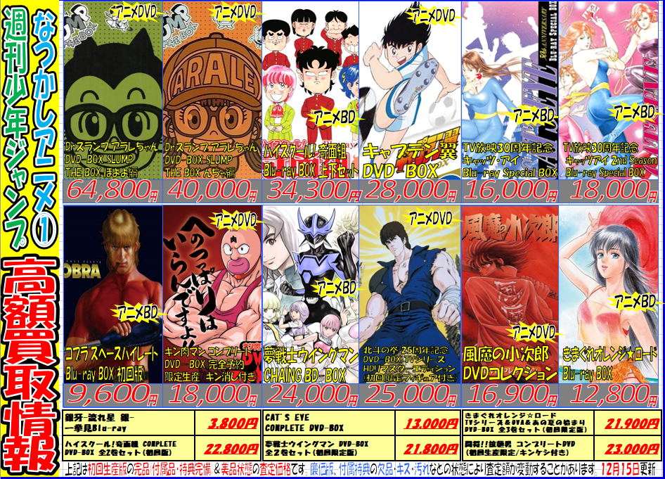 なつかし『週刊少年ジャンプ』関連アニメ買取強化情報