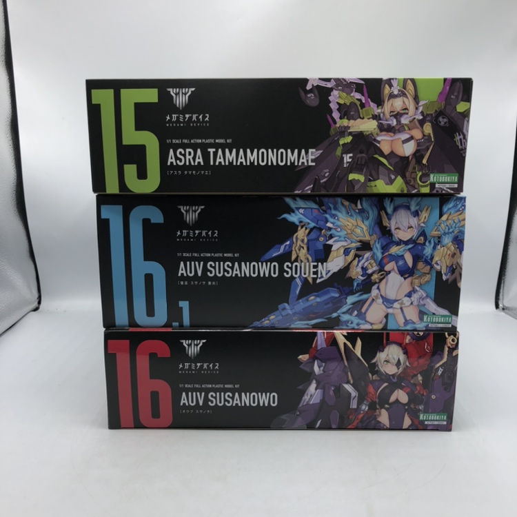 メガミデバイス人気作品、「アスラ タマモノマエ」「蒼炎 スサノオ」「スサノオ」