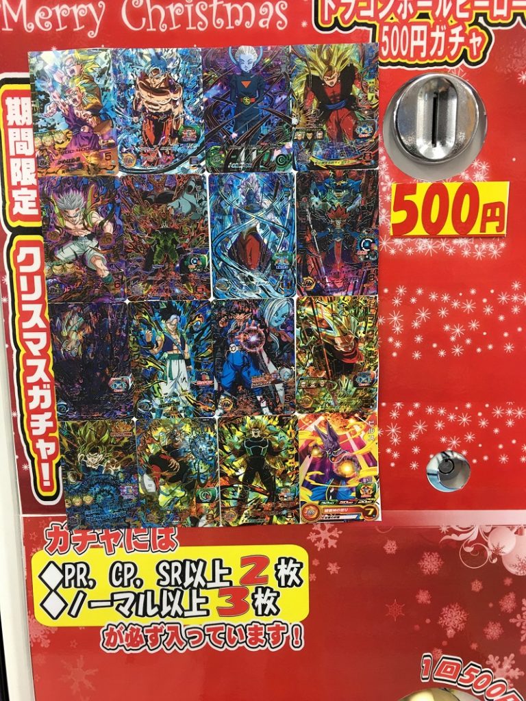 ドラゴンボールヒーローズ500円ガチャ更新しました!/メディオ!沖新 2018年12月22日 13時00分 ドラゴンボールヒーローズ500円ガチャ更新しました! 今回はなんと『親子カメハメ波』を投入しましたー!! 結構レアな品なんで是非ともゲットして貰いたい一品です!! そして! お待たせしました!! ドラゴンボールヒーローズのシングルカードが大量入荷しましたー!!!! 店頭にてスペース拡張して展開中ですよ!! 是非チェックに来てください!!! トレーディングカード トレカ トレカガチャ内容更新 メディオ!沖新 中古商品新入荷情報