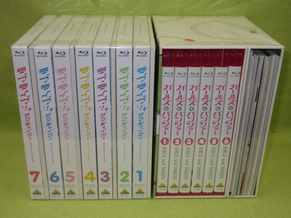 ラブライブ!サンシャイン!!セットは特典完備です。ガルパンセットは帯及び特典紙製トランプ&トランプケースがありませんので店頭価格より1000円引きとなっております。共に状態はわりと綺麗なのでオススメですね(♡´ω`♡)