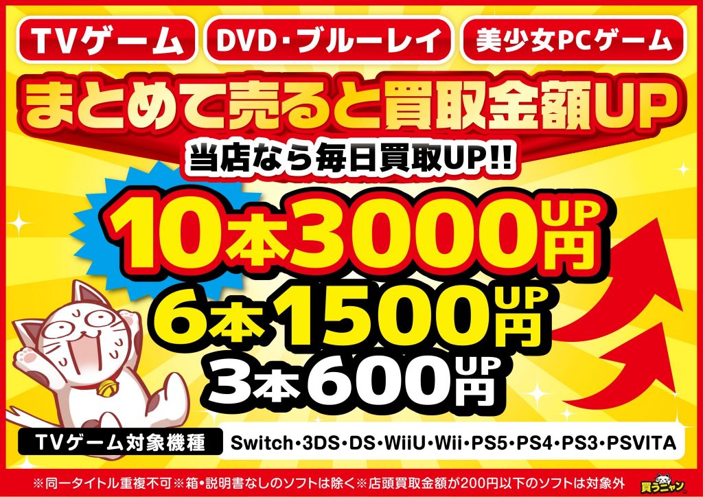 また現在当店では「TVゲームソフト」&「ブルーレイ&DVD」&「美少女PCゲーム」のまとめ買取UP企画をお行っております。