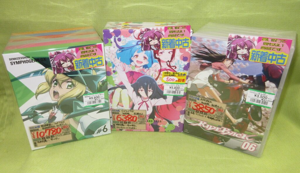 BD版『#戦姫絶唱シンフォギアGX 全6巻セット(期間限定版)』&『#ゾンビランドサガ 全3巻セット(初回版)』、DVD版『#RIDEBACK(#ライドバック) 全6巻セット(限定版)』を買取りさせて頂きました*。ヾ(。>v<。)ノ゙*。