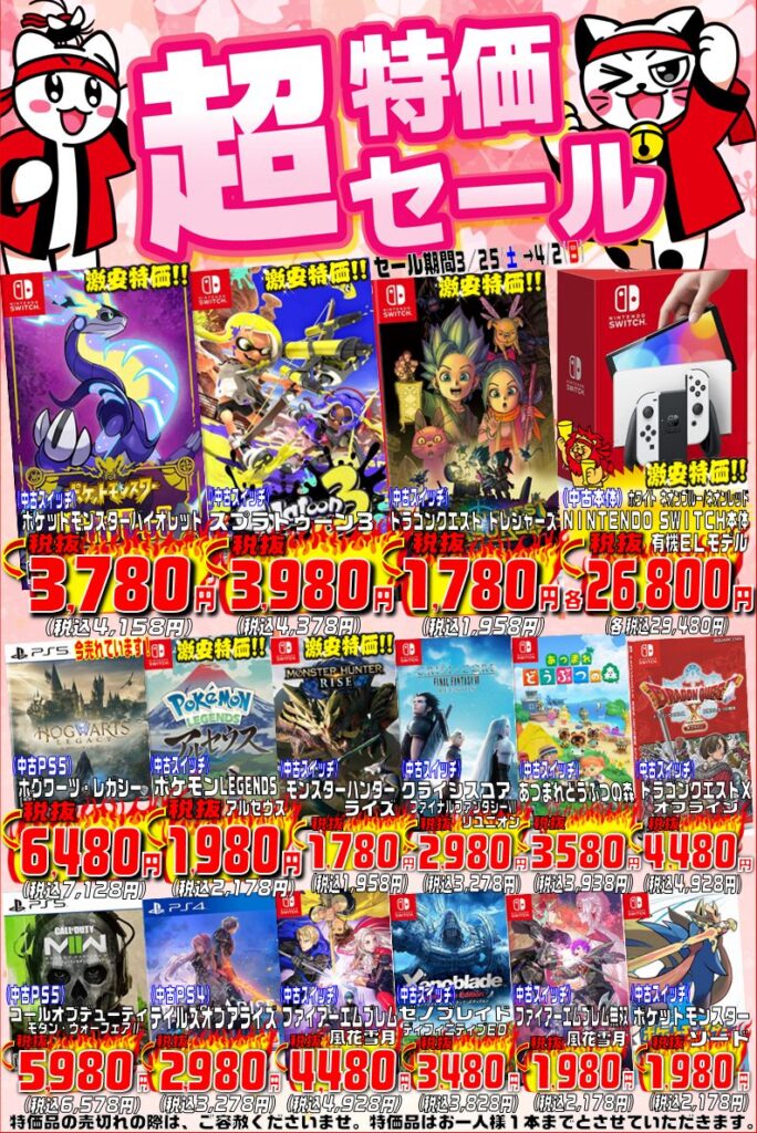 TVゲーム『春の超特価セール』開催中!!(=゚ω゚)ノ