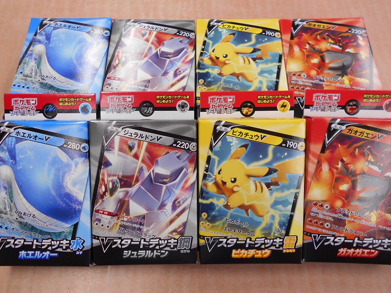 売り切れていたポケカ『Vスタートデッキ』の水・鋼・雷・炎が再入荷しました!