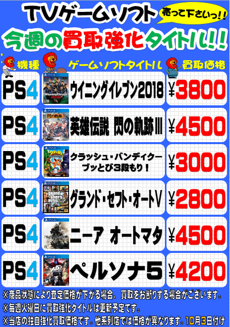 【メディオ!西市】TVゲームソフト今週の買取強化タイトル