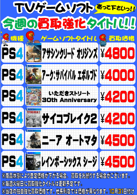 メディオ!西市店 今週の買取強化タイトルはこちら!